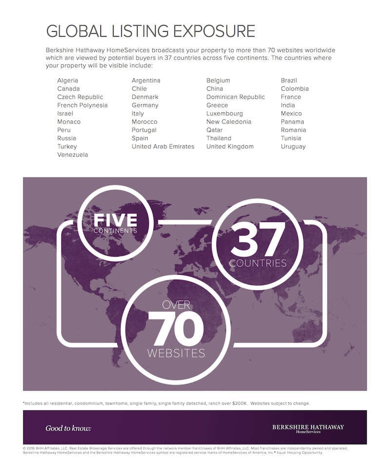 To compliment our website going international, Berkshire Hathaway HomeServices has also partnered with Worldposting, and will soon be sending all of our listings to 5 continents, 37 countries, on 70 international websites! This will give any property listed by a Berkshire Hathaway HomeServices Warren Residential agent far superior international exposure than our competition!
