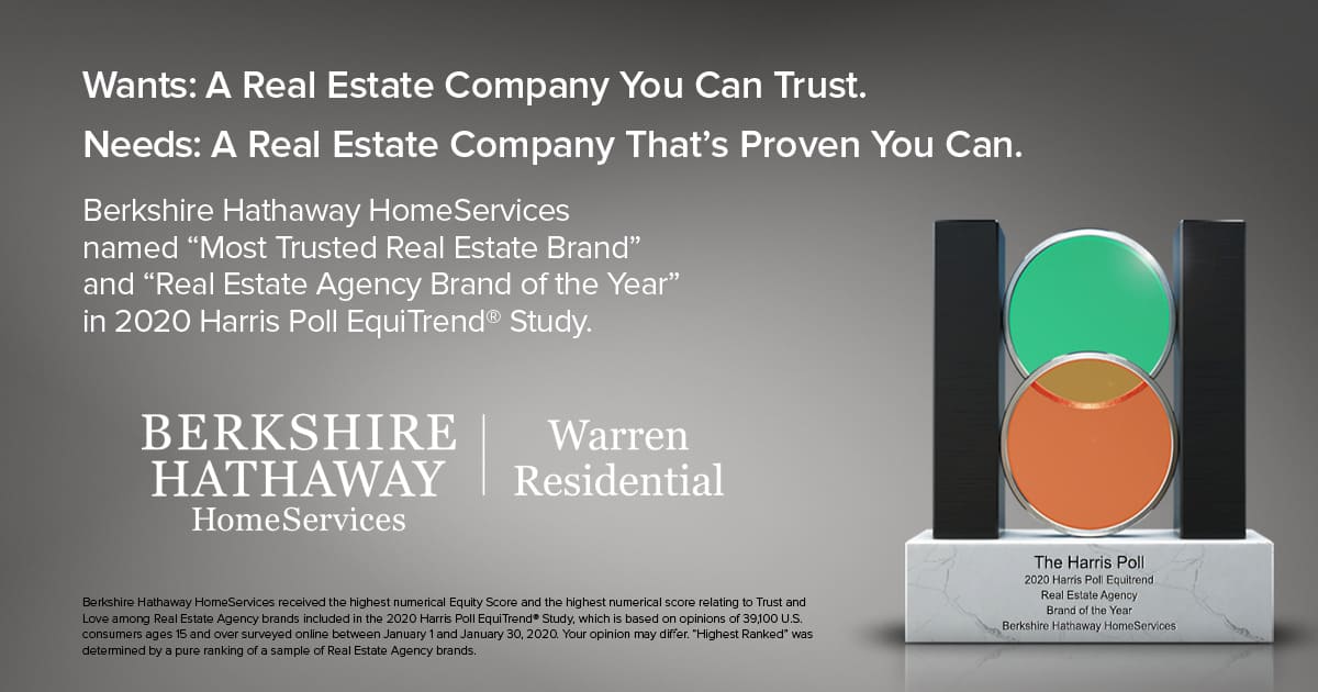 We are honored to be recognized once again by consumers in the respected Harris Poll EquiTrend® study,” said Chris Stuart, CEO of Berkshire Hathaway HomeServices. “It speaks to our franchisees’ care, dedication, and attentiveness to the real estate needs of their clients. And, that we would be recognized as both the “Most Respected” and “Most Loved” Brand is especially exciting. Berkshire Hathaway HomeServices, the industry’s Forever Brand, is built on core values of Trust, Integrity, Longevity, and Stability so it’s good to see consumers are experiencing those qualities firsthand.”
