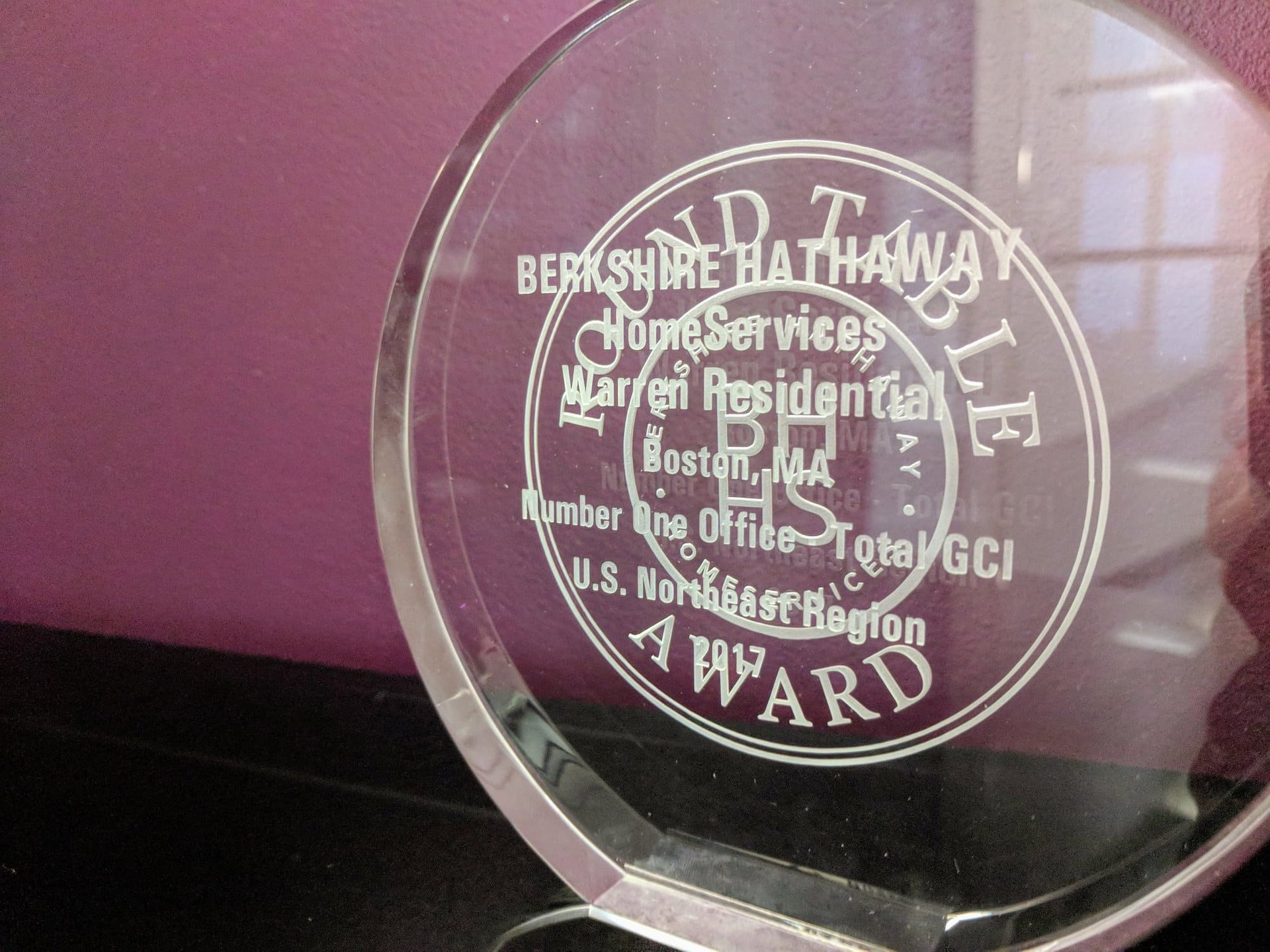 We are thrilled to announce that Berkshire Hathaway HomeServices Warren Residential has placed #1 in total GCI for the U.S. Northeast Region! This award is given based on sales volume for offices with 21 - 40 agents in the entire region which includes New England and New York. The previous year we ranked #3 and are thrilled to make it to the top of the list for 2017!