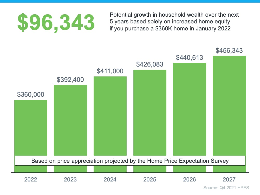 With a limited supply of homes available for sale and both prices and mortgage rates increasing, it can be a challenging market to navigate as a buyer. But buying a home sooner rather than later does have its benefits. If you wait to buy, you'll pay more in the future. However, if you buy now, you'll actually be in the position to make future price increases work for you. Once you buy, those rising home prices will help you build your home's value, and by extension, your own household wealth through home equity.
