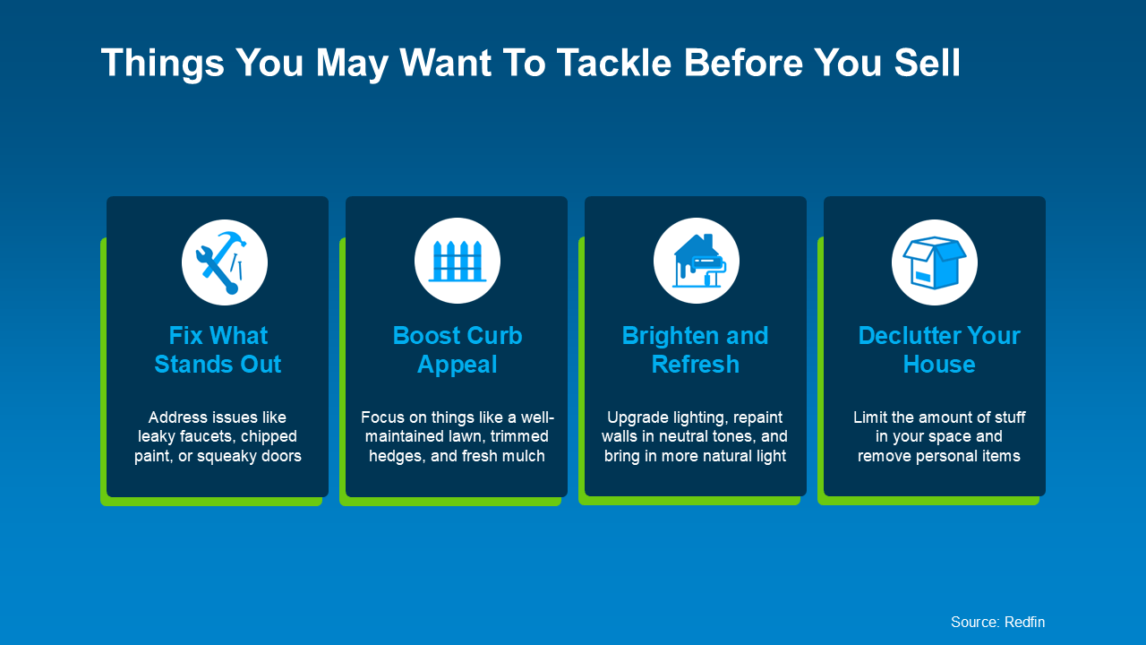 “You won’t have time for any major renovations, so focus on quick repairs to address things that could deter potential buyers.”