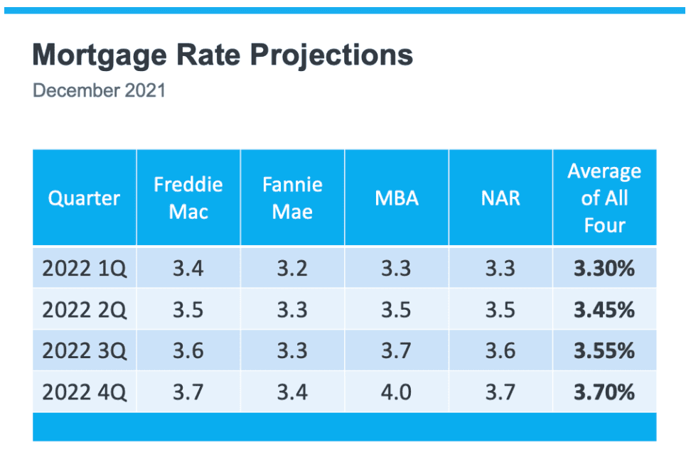One thing that we know is coming in 2022 is an increase in rates. As you can see in the graphic below, rates are predicted to rise to somewhere between 3.4%-4.0%.